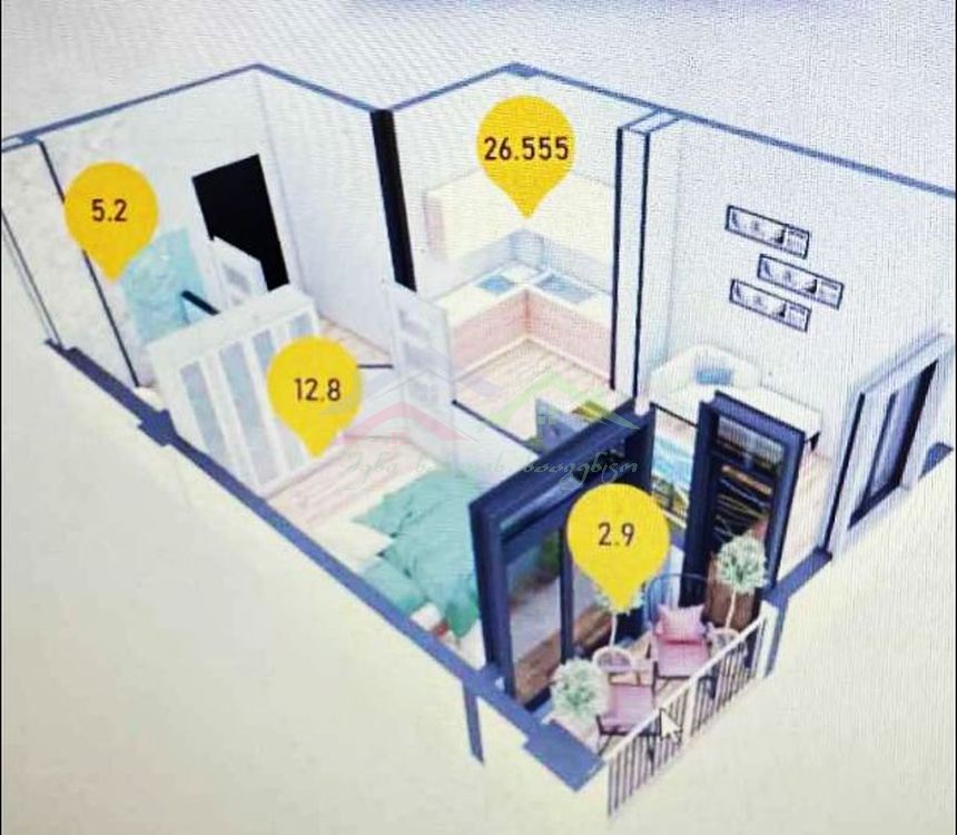 ფართი: 47 კვ.მ (აივნით ერთად)