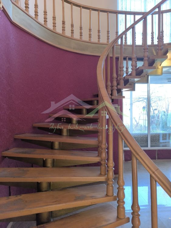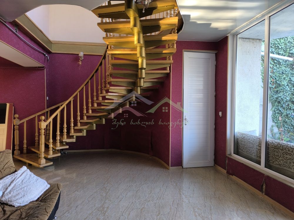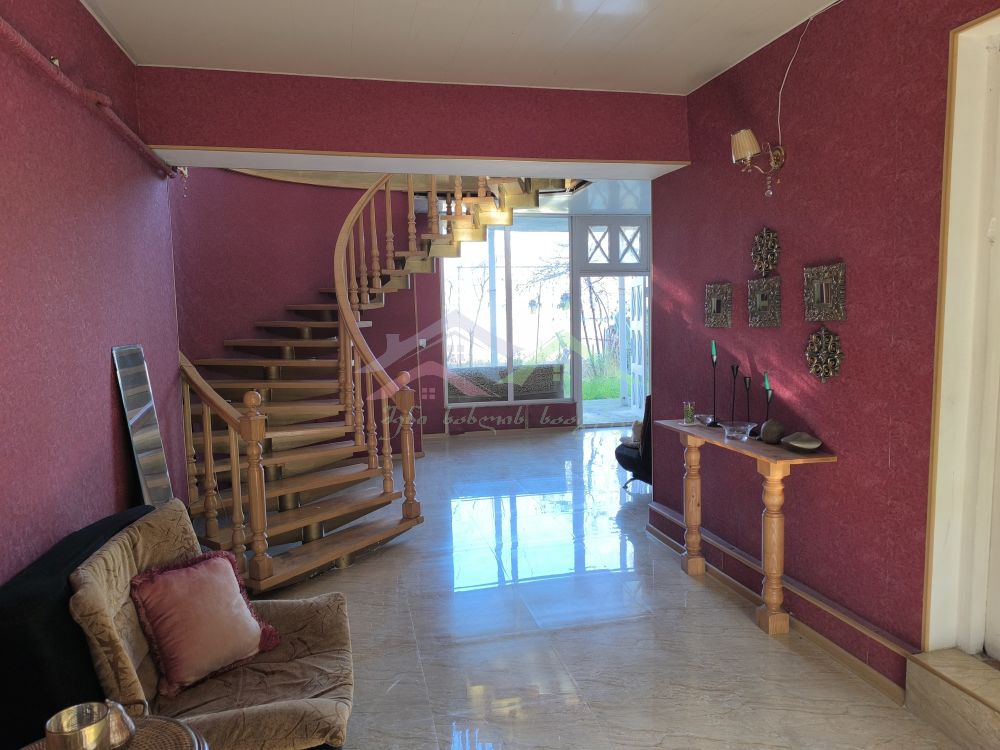 მყუდრო და პრაქტიკული საცხოვრებელი ორი სართულით, შიდა მოხვეული ხის კიბით.